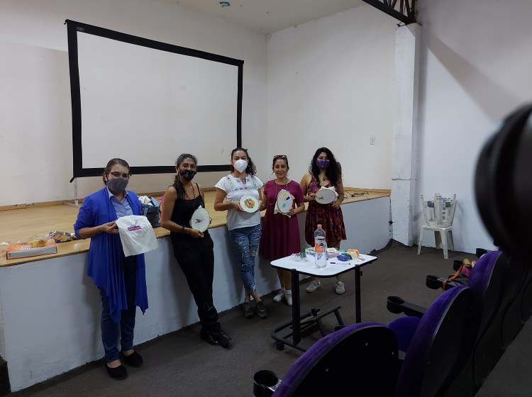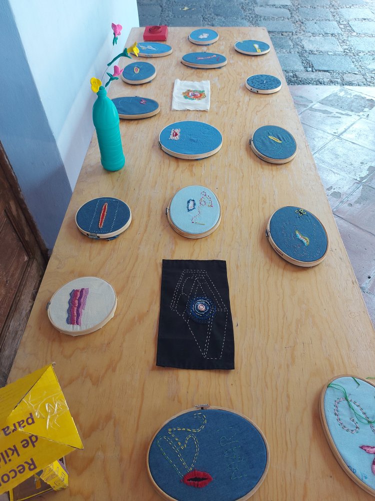He creado talleres de creación de proyectos artísticos con bordado. Están diseñados para mujeres que no necesariamente son artistas, incluso no es necesario que sepan bordar. La metodología logra que las participantes indaguen dentro de ellas mismas y relacionen lo inefable con materiales, puntadas, formas y colores.